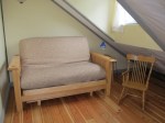 Our barn loft studio is welcoming, bright and spacious. The loft offers a territorial view of pastures and our organic vegetable garden. Queen bed with memory foam topper in main room, double futon couch in separate small bedroom. Kitchenette, dining table, luxurious couches. Kitty-corner to Maury Marine Park!